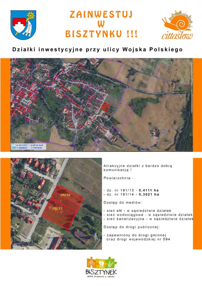 Gmina Bisztynek posiada tereny przeznaczone pod inwestycje o charakterze przemysłowym, usługowym i mieszkaniowym.